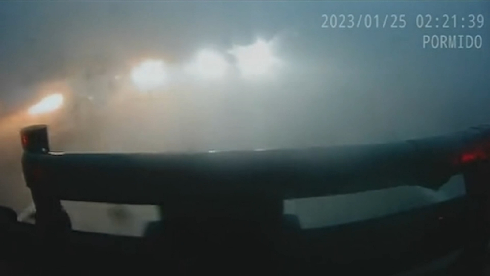 Dashcam video showed the ferocious winds. The woman inside had just picked up her grandson from school when the storm got worse.