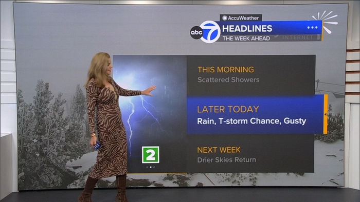 Cloudy skies with scattered showers takes us through midday. A Level 2 system late this afternoon will bring widespread rain and possible thunderstorms along with southerly winds gusting to over 40 mph.
