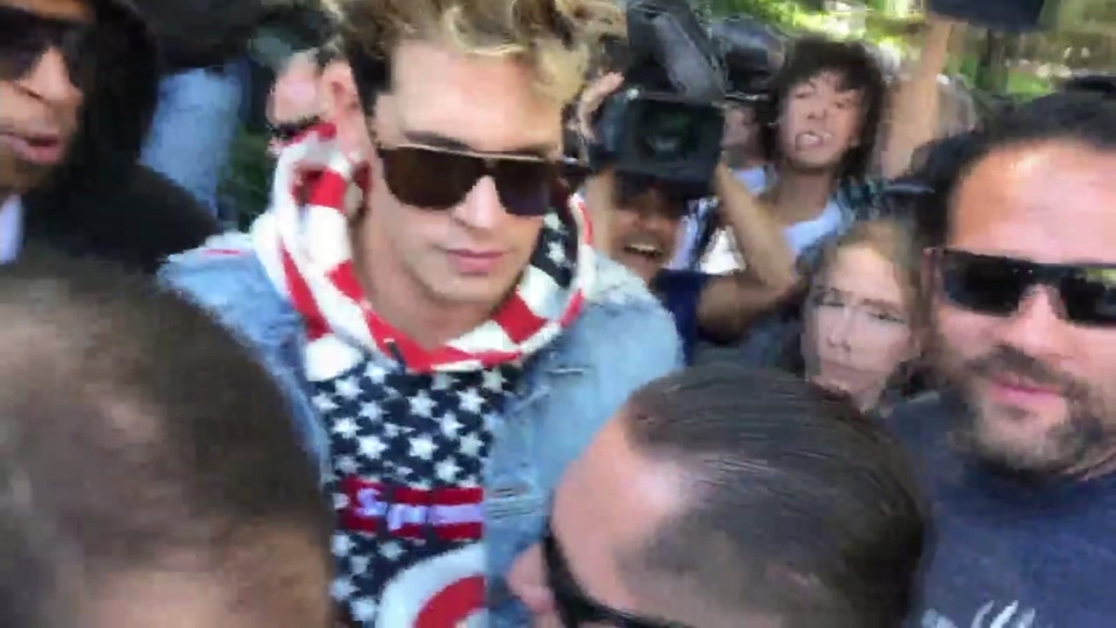 Sky 7 was overhead when Yiannopoulos appeared in Sproul plaza surrounded by three dozen supporters who made their way through the rigorous security line.